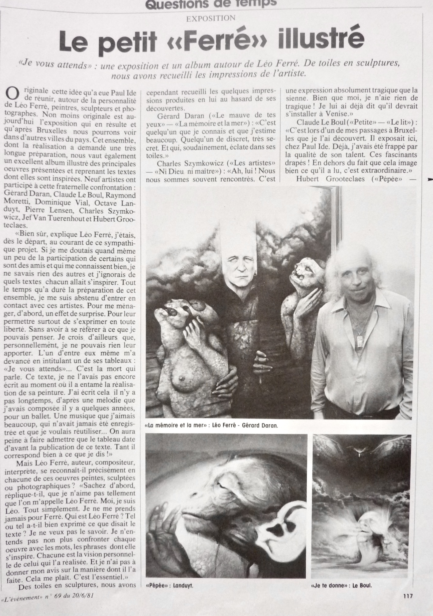 - 1982 : Je vous attends Léo Ferré - Paul Ide Gallery Bruxelles / White Tienen Galerie Hermans, Tienen